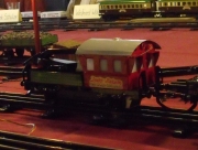 Auf dem Tisch standen zwei ältere und stark bespielte Donnerbüchsen von einer Uhrwerk- oder Batteriebahn.