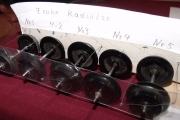 Zum ersten Thema wurde die Zeuke - Weiche auseinandergenommen, Grund war die Lauffreudigkeit zu verbessern. Das hieß; man mußte die Weichen ersteinmal vermessen, welche Abstände, welche Zungenlängen, welche Herzstücken und welche Radien es an dieser Weiche gab. Vermessen wurden auch die einzelnen Räder der unterschiedlichsten Hersteller und deren Durchmesser, Radlaufflächen und Radkranzhöhen und daraus ergab sich die Optimierung der Zeuke Weiche. Warum die Zeuke Weiche? Weil diese optimal zum umbauen taugt. Das Bakalit kann man gut bearbeiten und die Antriebe liegen optimal unter der Weiche.