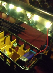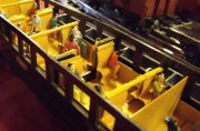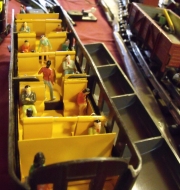 Was sehr interessant war, ist die hier gezeigte Inneneinrichtung eines Zeuke D-Zug Wagens mit interner Beleuchtung. Diese stromunabhängige Beleuchtung wurde durch eine 9V Batterie gewährleistet. Sitzgruppen und Figuren waren sehr schön anzusehen. |