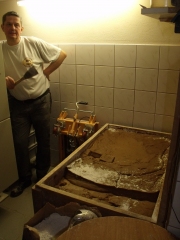 Zuerst gingen wir in den Teigraum. Dort lagert der Teig mehrere Monate und auch Jahre. Erst kurz vor der Verarbeitung werden die Gewürze zugefügt. |