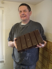 Jetzt wird es schokoladig. Hier zeigt uns der Pfefferküchler seine Tafel Schokolade, so am Abend vorm Fernseher. ;-)