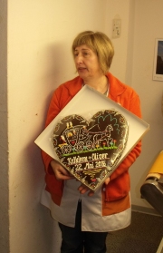 Nun kann der Pfefferkuchen mit Nüssen belegt, oder mit farbigen Zuckerguß verziert werden. Was noch zu erwähnen wäre, jeder Pfefferkuchen wird noch handverpackt und sogar von der Chefin persönlich. |