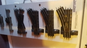 Als nächstes befasste sich Peter mal ausführlich mit dem Zeuke Spur 0 Schienen und zeigte uns, wie sich über die Jahre die Bauform, angefangen von Schwellen aus Holz über Bakelit bis hin zum Stahl, verändert hat. Dafür hat er uns zur besseren Veranschaulichung 2 Tafeln mit diversem Gleismaterial mitgebracht. Es ist schon erstaunlich, wie viele verschiedene Materialien im Laufe von 15 Jahren Spur 0 Produktion verarbeitet wurden. |